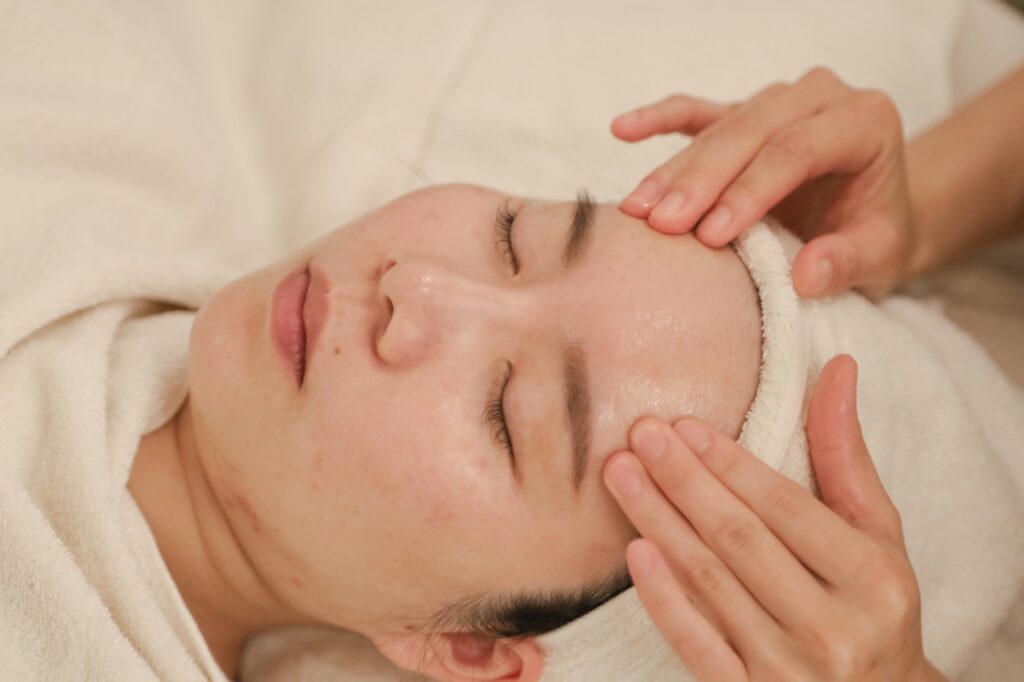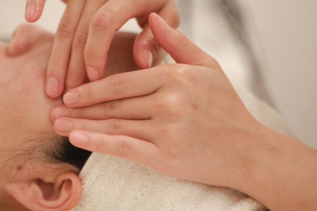 最後一個步驟,主要是放鬆頭部以及舒緩緊繃的肌肉,美容師透過簡單2-3分鐘的頭部按壓,疏通周圍的穴道,改善頭部過度緊繃的肌肉,讓肌肉放鬆,慢慢地延伸到背部,為課程畫下完美的句點。